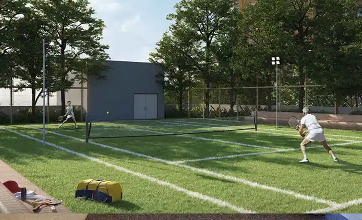 Vaanya’s outdoor amenities provide a diverse range of recreational options for every resident. Enjoy serene moments at the reflecting pond with its floating pavilion, or unwind on the recreation lawn, perfect for leisure and outdoor activities. The property features facilities for various outdoor sports, including a tennis court and a net cricket area for enthusiasts. Children have their own dedicated spaces with a safe kid’s pool and a vibrant kids play lawn.