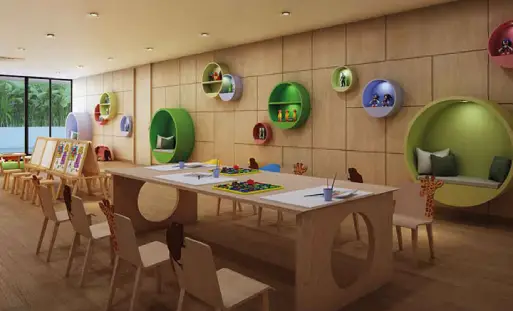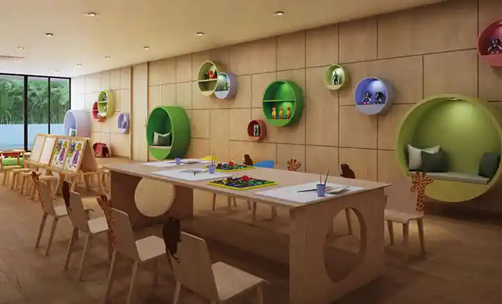 Our indoor game zone provides endless recreational options, while the changing rooms offer convenient facilities for freshening up. Guests are well-accommodated in our comfortable guest rooms. Children can enjoy a dedicated space for indoor activities, while the Cafe – Restaurant offers a delightful dining experience. These amenities are designed to enhance your living experience, making Vaanya a truly exceptional place to call home.